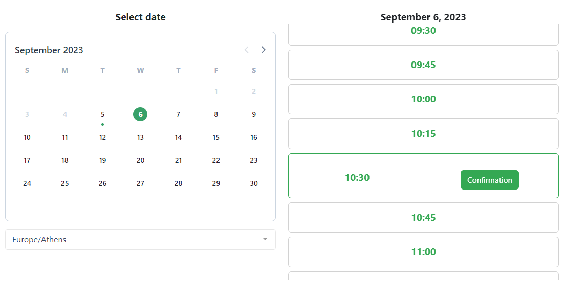 The customer will visit the link, select a date-time and the application will find and display the available times you have for the selected schedule.