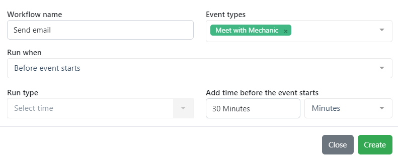 You have the possibility to add automatic actions at various times of the closed events. You can automatically send emails to users of the organization as well as to customers.
