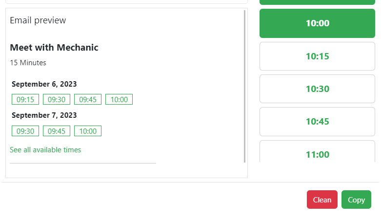 With the unique event type link created by the application, your customers can register their appointments quickly and easily. You can even share specific times and days via email.